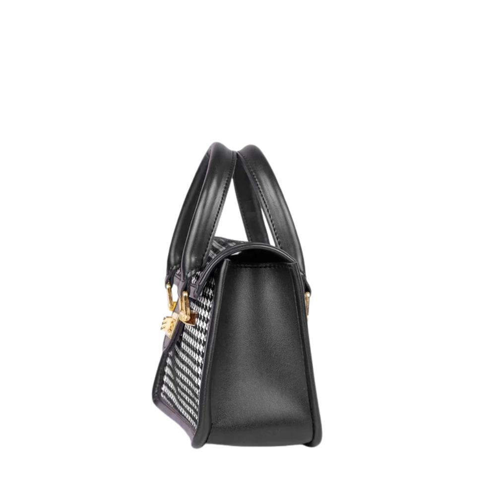 The Elora Duo-Tone Handbag combines timeless elegance with a modern edge. Designed in a balanced mix of black and white, it offers a clean and sophisticated appearance that complements any outfit. Its structured shape and subtle detailing make it a versatile choice for both work and casual outings. A perfect addition to any wardrobe that values effortless style and refined simplicity.